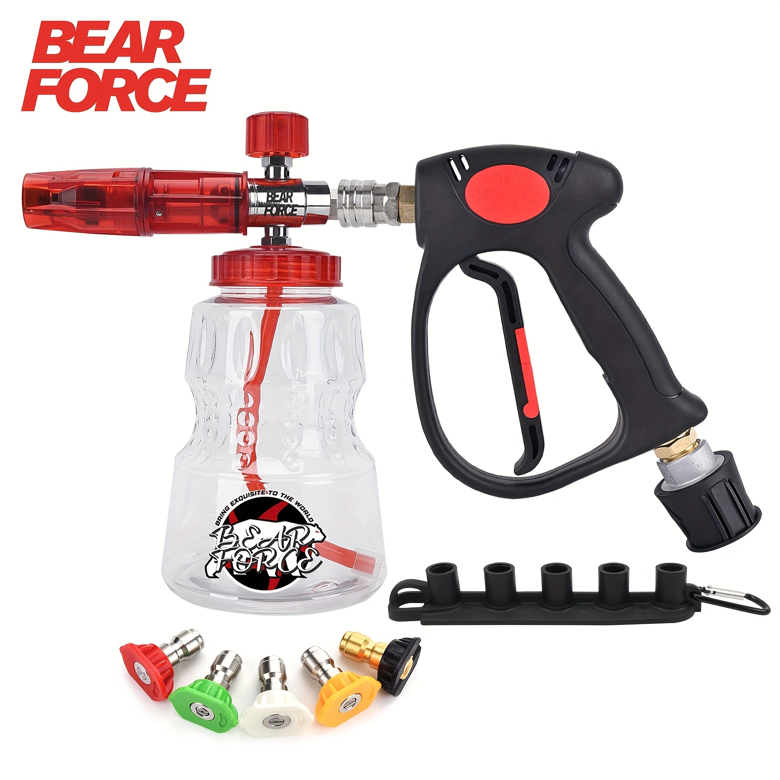 BEAR FOR 고압 세정기 폼 캐논, 자동차 세차용 폼 캐논 키트 1/4인치 퀵 커넥터, 5종 고압 세정기 노즐 팁 포함