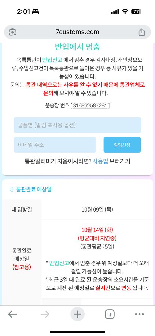 운송장이 각각 13일, 14일에 통관 완료 예정이었는데 아직 진행이 안 되고 있습니다.
