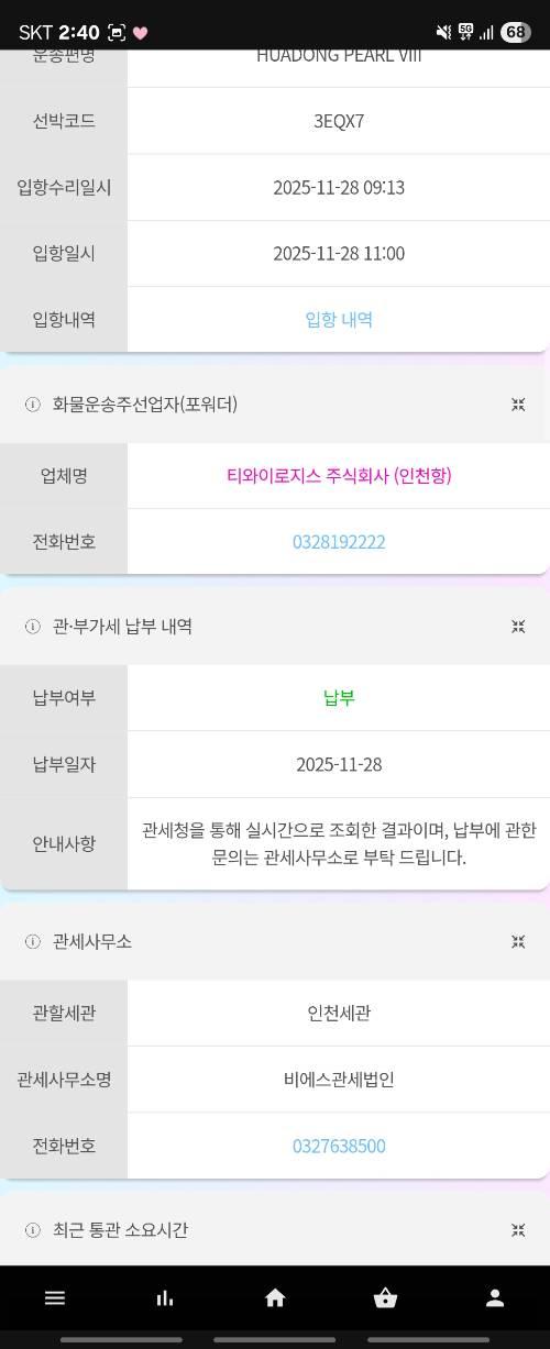관세도 납부 로 떠 있습니다
