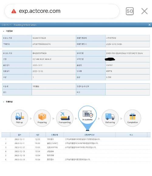 운송장 번호는 502807370521 (ACT통관회사)입니다