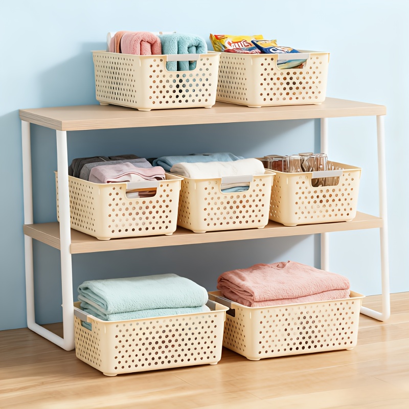 30개/50개 핸들 스택 가능 스토리지 바스켓, 두꺼운 PP 소재 통기성 디자인, 대용량 수납 박스 – 욕실, 옷장, 주방, 기숙사, 장난감 및 책 정리에 적합, 공간 절약형 헤비듀티 선반, 선반용 바스켓