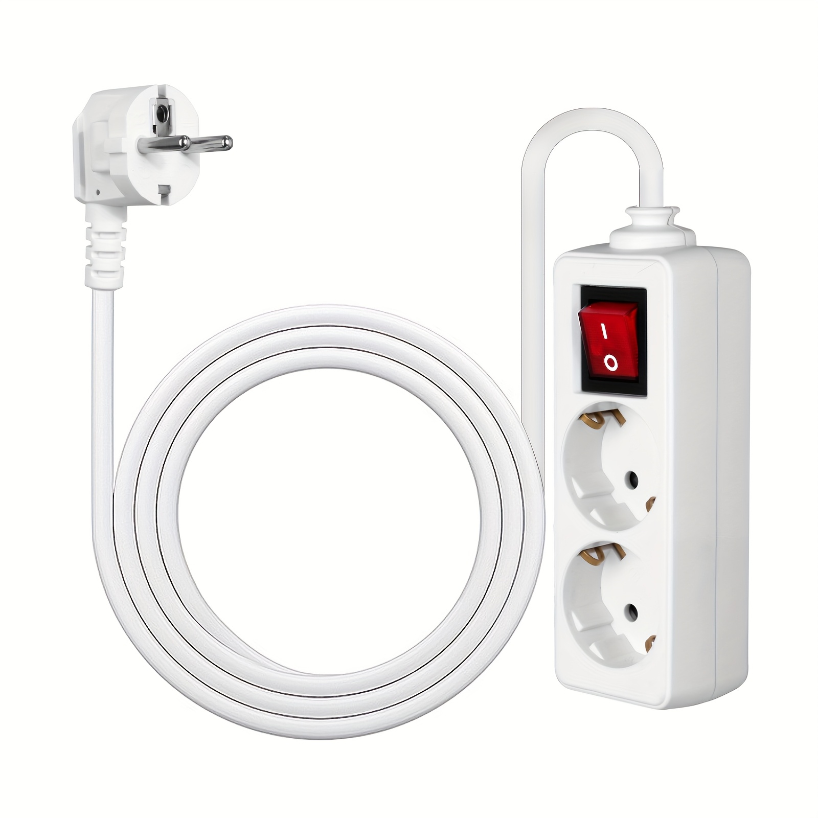 스위치가 있는 가정용 유럽 표준 멀티탭, 250V/16A, 스위치 기능 포함, 140CM/55IN 긴 연장 코드, 가정 및 사무실 사용에 적합