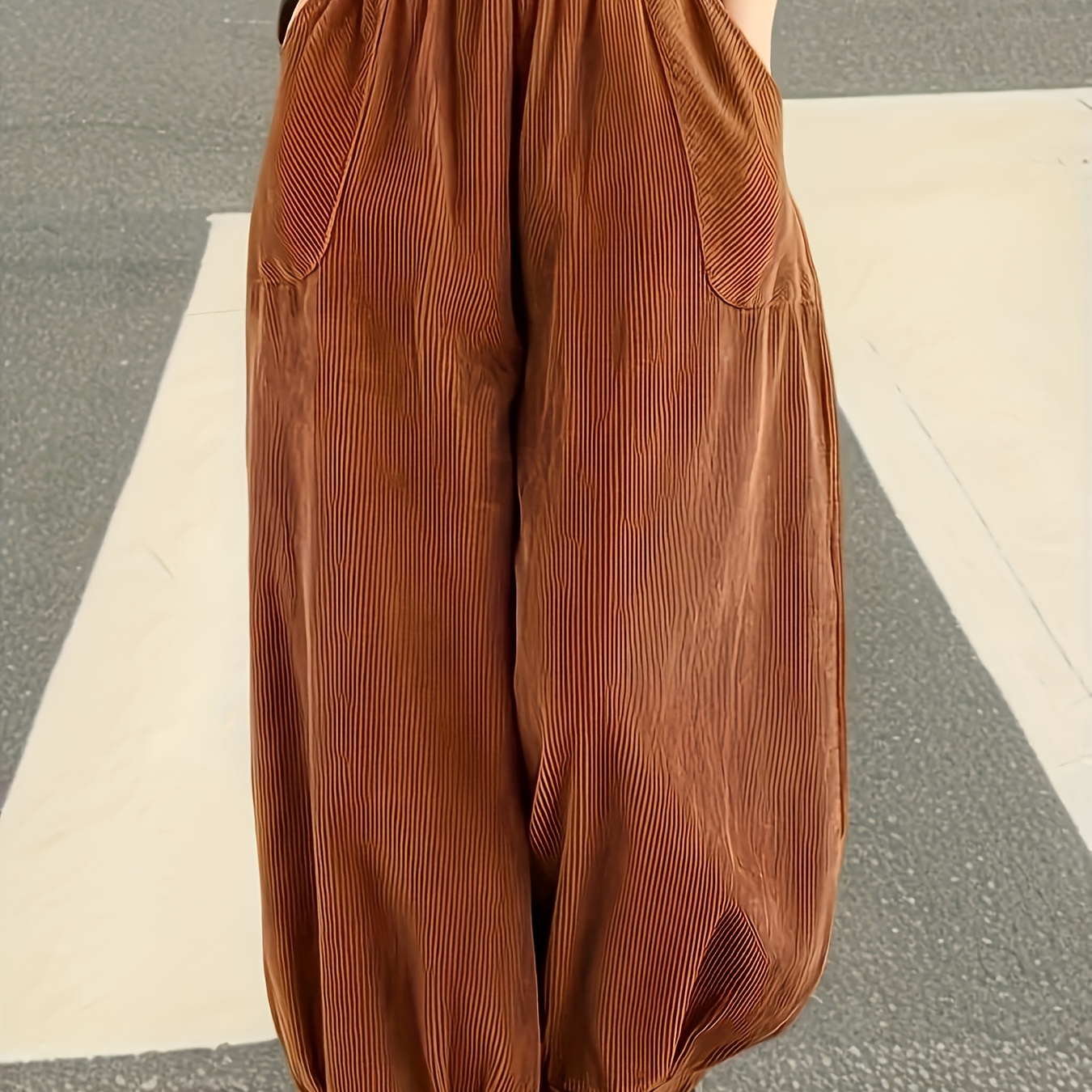 여성 가을-겨울 캐주얼 빈티지 코듀로이 크롭 팬츠 | 포켓이 있는 패셔너블하고 편안한 착용감, 활용도 높은 단색