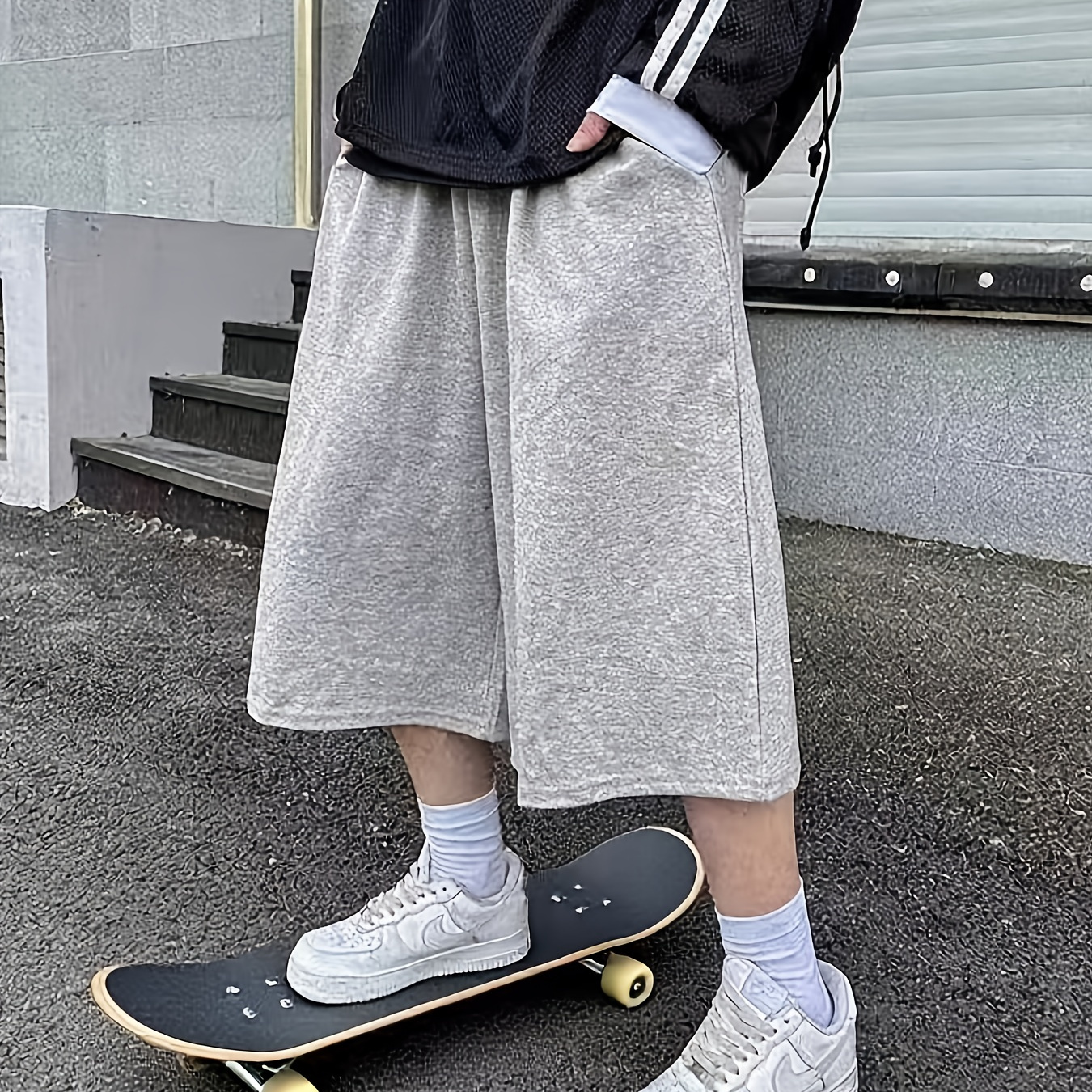 남성용 오버사이즈 와이드룩 캐주얼 미드-티 세븐-에이트스 길이 팬츠 - 스케이트보드, 헬스, 스트리트웨어에 적합한 루즈핏 애슬레틱 팬츠
