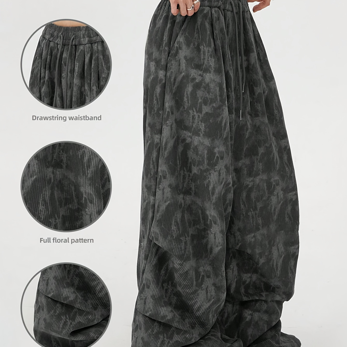 여성용 YK2 루즈 플리츠 코듀로이 긴 바지, 타디드 염색 패턴 프린트, 봄/가을 신상