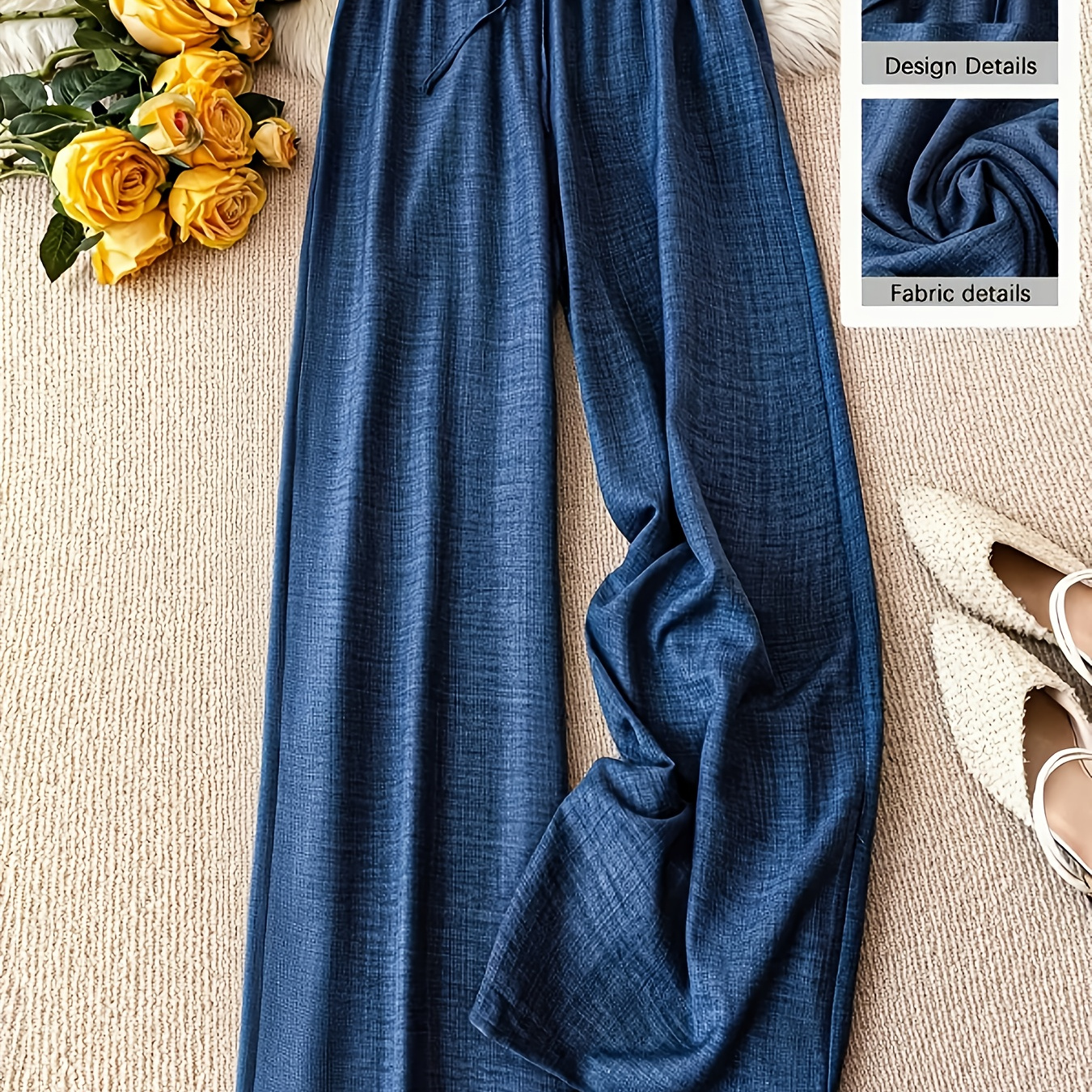 여성용 우아한 솔리드 컬러 가짜 드로스트링 허리 편안한 긴 바지