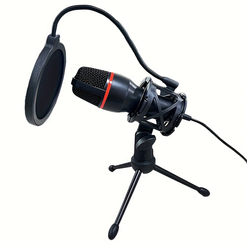 전문가용 3.5mm 플러그인 콘덴서 게이밍 마이크, 플러그 앤 플레이 콘덴서 PC 마이크, 삼각대 및 서프레서가 포함된 유선 압전식 마이크, 스튜디오 녹음, 미디어 스트리밍 및 게이밍용, 노트북, 데스크톱, 컴퓨터용
