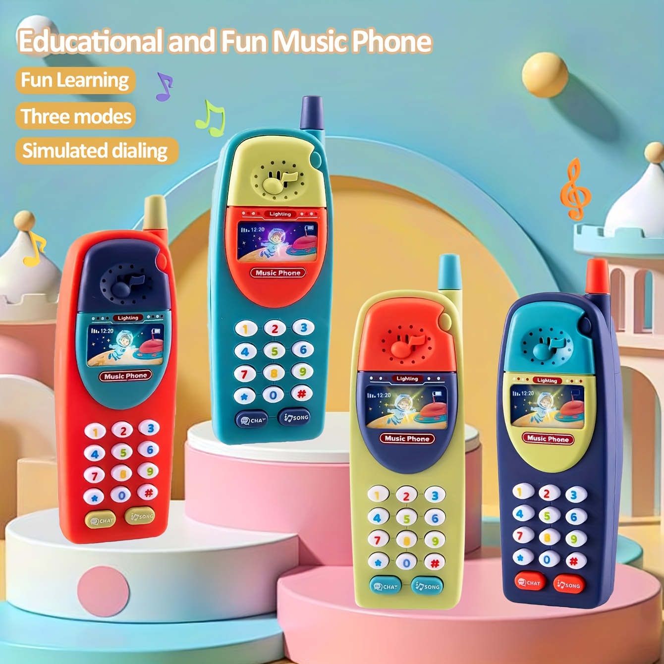 재미있는 조기 교육 인지 장난감, 소리 및 조명 효과가 있는 아동용 다기능 악기 전화기, 시뮬레이션 전화 걸기, 부모-자녀 상호작용/조기 교육/학습 게임에 적합, 크리스마스/할로윈/부활절/새해/생일/추수감사절/어린이날 휴일 선물, 남녀 아이 모두를 위한 훌륭한 장난감, 크리스마스 미학, 배터리 미포함으로 배송됨