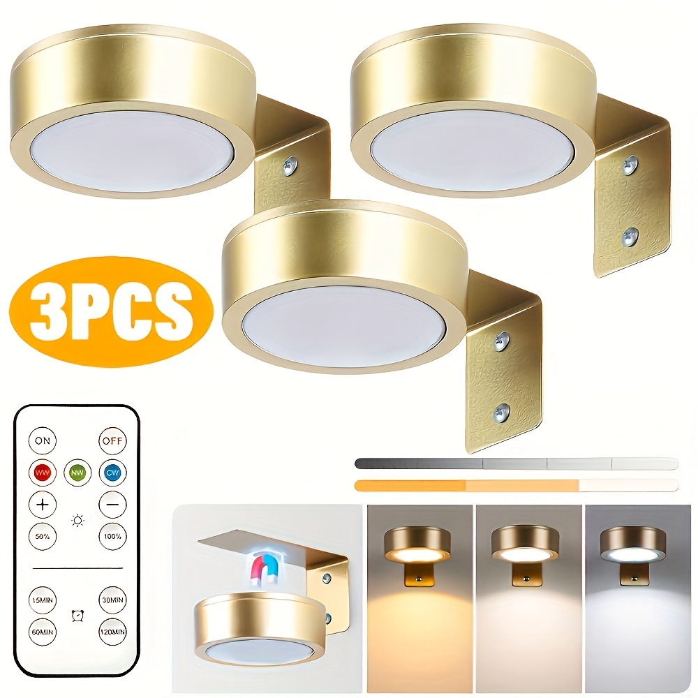 골든 벽걸이 액자 조명 3개 세트, 배터리 작동 (배터리 미포함), 리모컨 및 터치 컨트롤, LED 디스플레이 조명, 3가지 색온도 조절 및 타이머 그림 조명, 액자형 예술 초상화에 적합