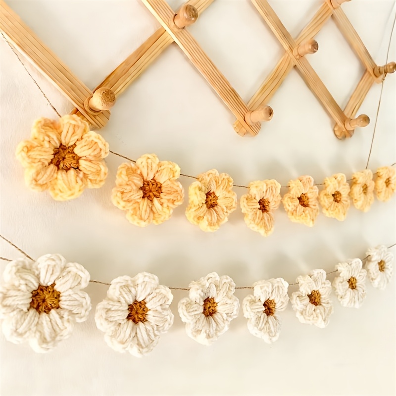 데이지 화환이 특징인 벽 장식, 코바늘 뜨개질 데이지 장식품, 수공예 배너, 베이비 샤워, 성별 공개 파티, 결혼식, 생일 파티에 적합한 가정 장식용, 거실 및 침실을 위한 기발한 디자인