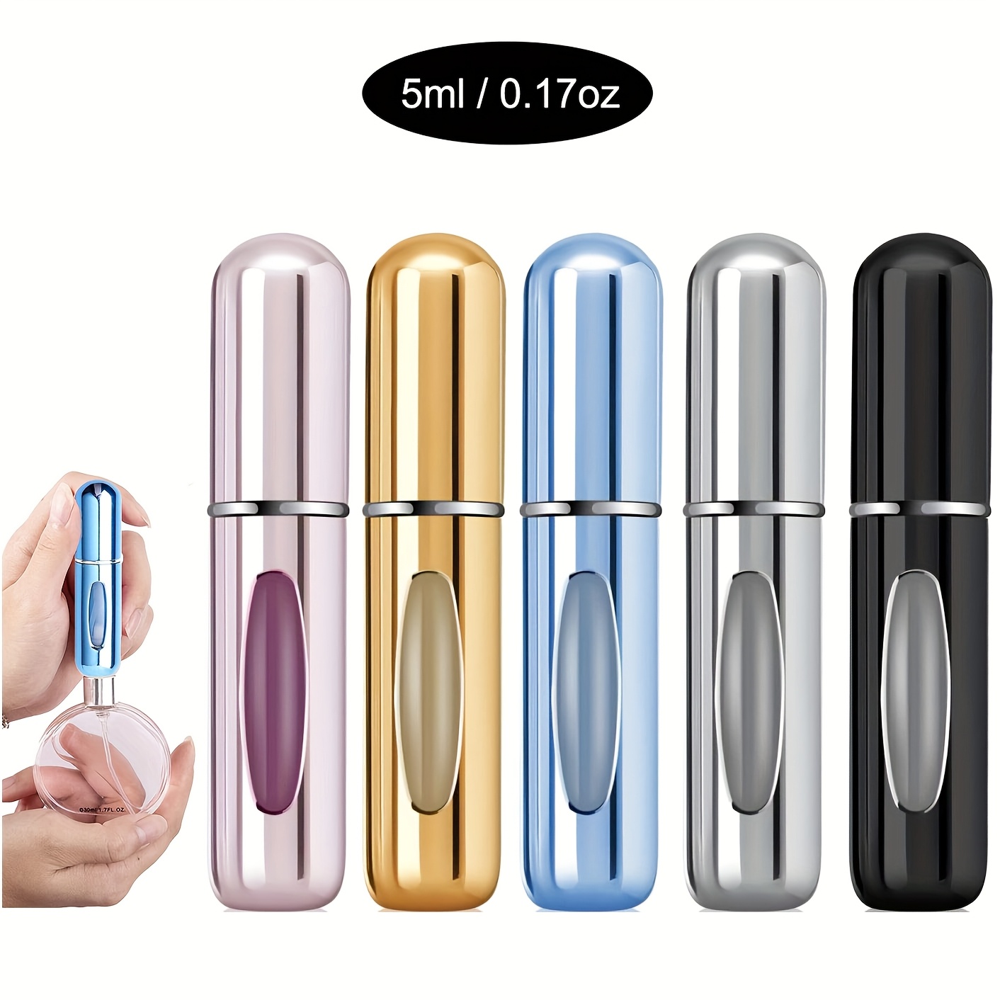 5개 세트 휴대용 리필 가능한 향수 분무기, 여행용 누출 방지 금속 스프레이 병 - 향수, 오일, 코롱 및 액체 용