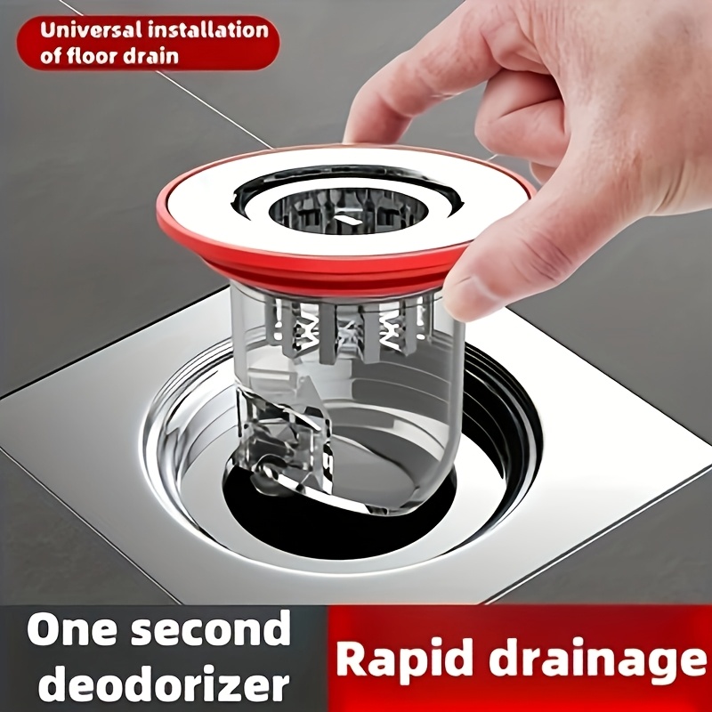 탈취 코어 욕실 바닥 배수구 | 역류 방지, 방수 그레이트, 냄새 제어 | 하수구 장치, 빨간색 및 흰색 플라스틱, 슬롯형 배수구 덮개, 실리콘 배수구, 욕실 용품