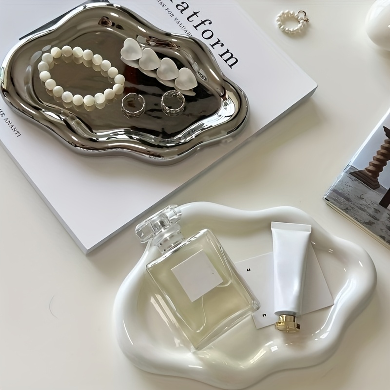 구름 패턴 장식 트레이 - 보석, 화장품, 열쇠 보관에 적합한 다용도 수납 정리함 - 화이트 주얼리 트레이 - 욕실, 주방, 침실 홈 데코, 욕실 추가 장식, 스타일리시한 수납, 소품 트레이