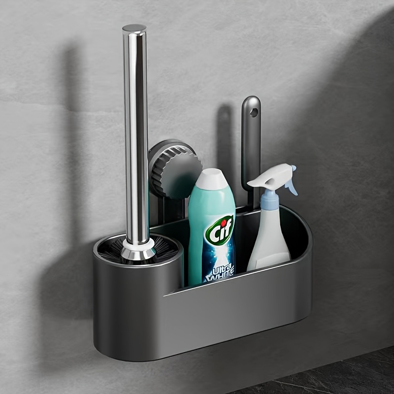 드릴이 필요 없는 흡착 컵 변기 브러쉬 3개 세트, 공간 절약형 욕실 용품, 청소 도구 보관 슬롯, 모든 모서리를 닦는 변기 브러쉬, 통합 보관 디자인