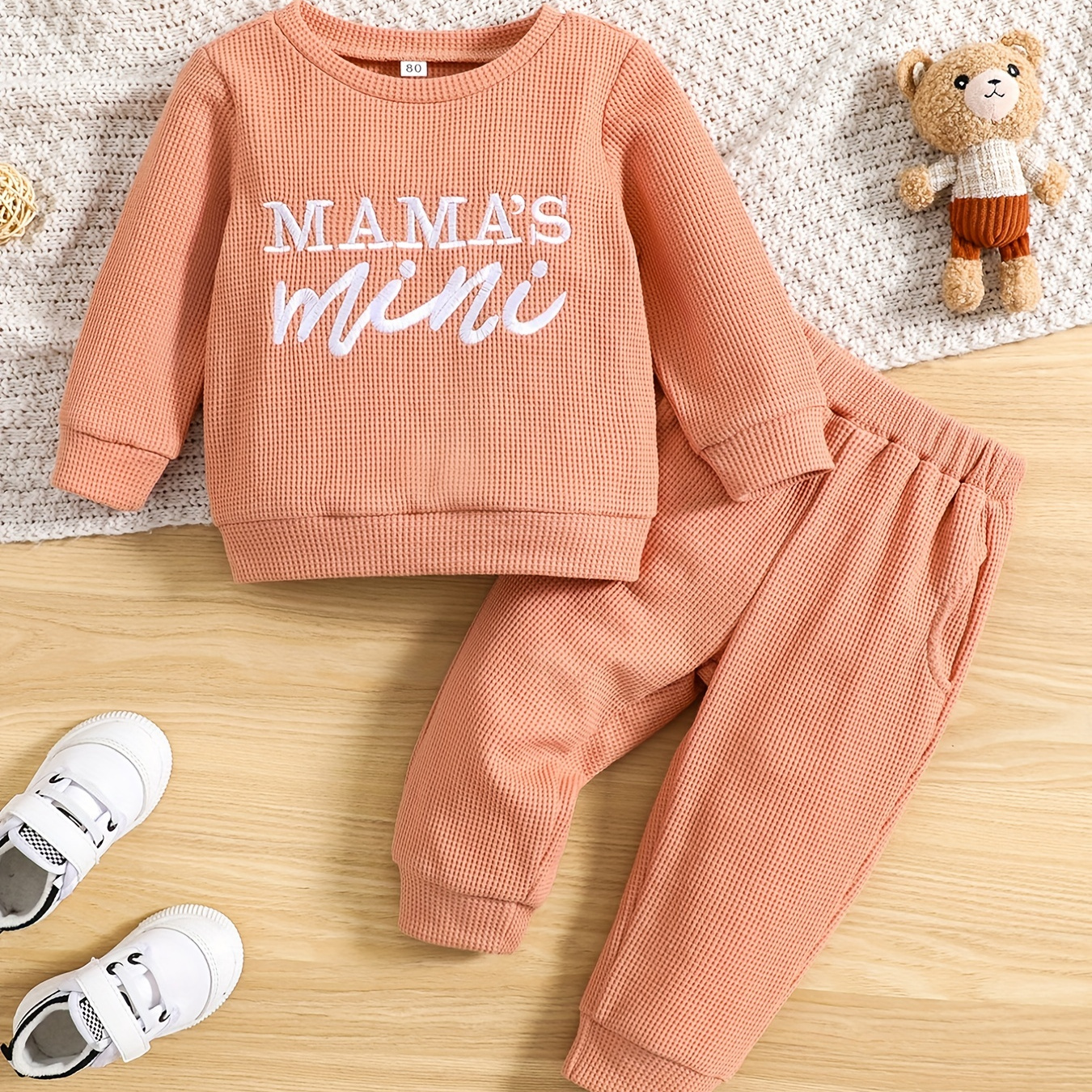 여아 봄 가을 긴팔 스웨트셔츠 & 긴 바지 레터링 "Mini Me Mommy" 자수 세트, 여아 봄 의상, 야외 여행 선물, 야외용