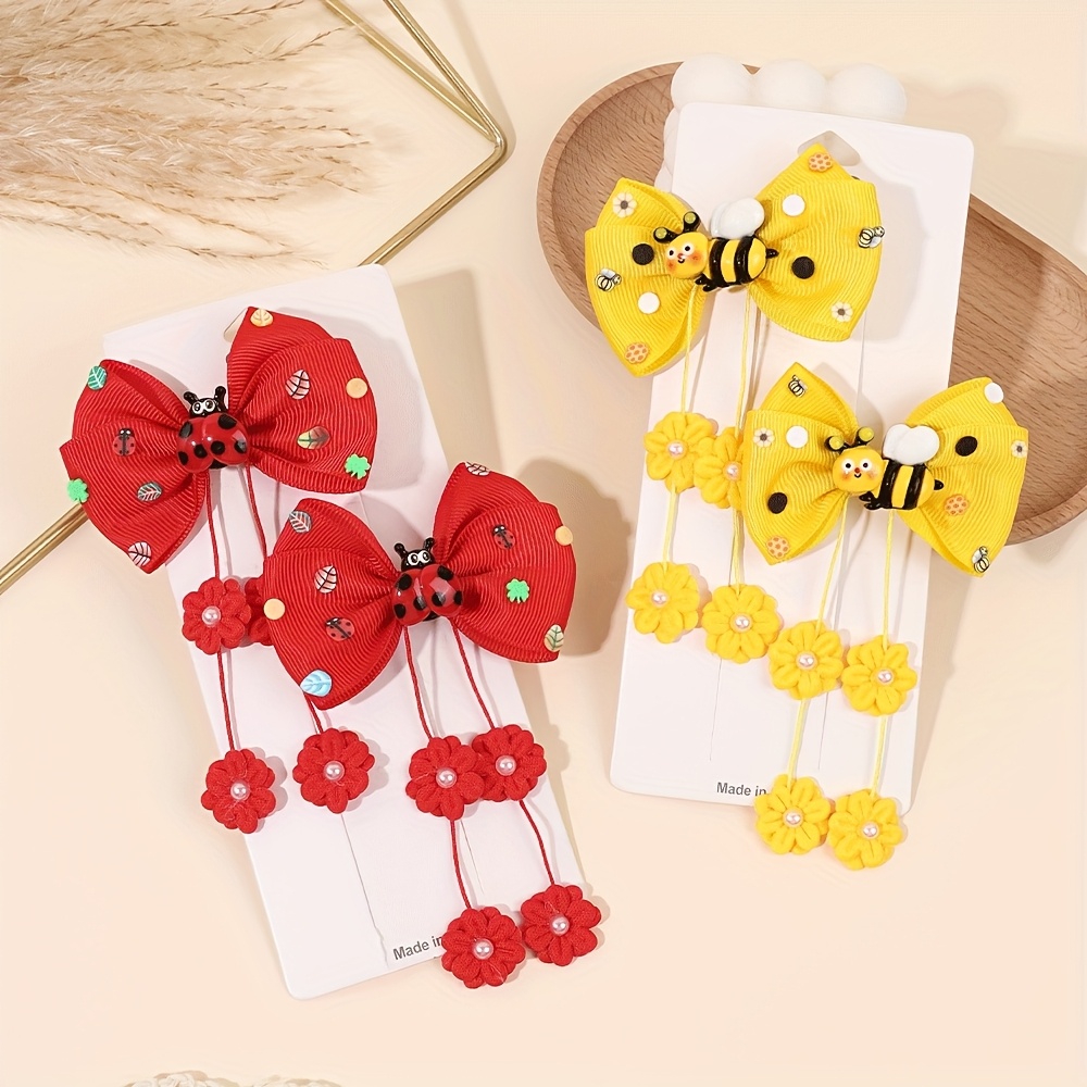2개 세트 달콤한 벌 리본 헤어 클립, 긴 태슬 장식 미니 벌 리본 바레트, 데일리 라이프, 선물, 헤어 장식용 귀여운 헤어 액세서리, 스타일리시 바레트, 가벼운 리본, 장식 클립, 패션 액세서리