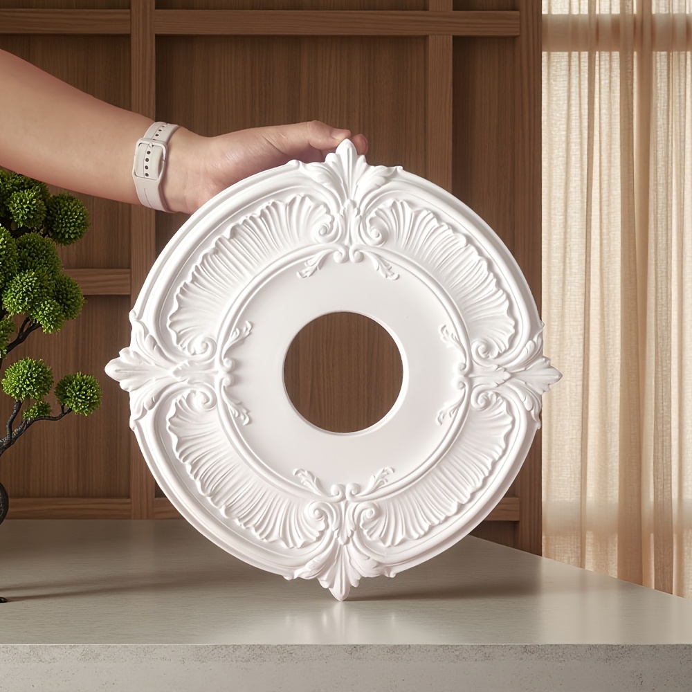 1개 우아한 프렌치 PU 소재 천장 메달, 12.9인치 및 17.9인치, 천장 샹들리에와 선풍기용 장식 받침대, 화이트 무광 표면, 방수 및 방습