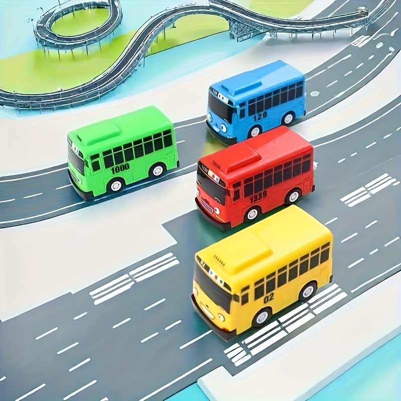 다채로운 푸시 앤 풀 버스 장난감 자동차 4개 세트 - 십 대를 위한 재미있는 교육용 선물로 운동 능력과 인지 능력을 발달시키며 크리스마스, 할로윈, 추수감사절 등에 적합합니다. 운동 능력 발달 | 밝은 색상 | 내구성 좋은 플라스틱