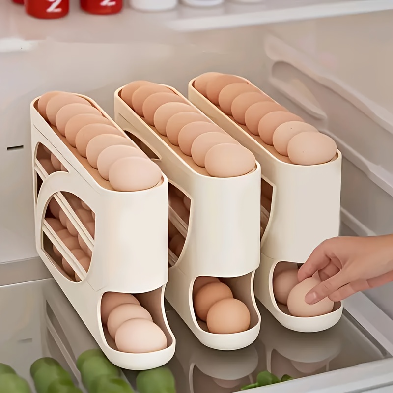 1개 4단 대용량 계란 보관함, 약 30개 수납 가능, 롤링 슬라이드 보관 박스, 냉장고 사이드 도어 자동 보충 롤링 계란 신선도 보관함, 세척 가능, 공간 절약형 디자인, 주방, 냉장고, 카운터탑 보관 도우미