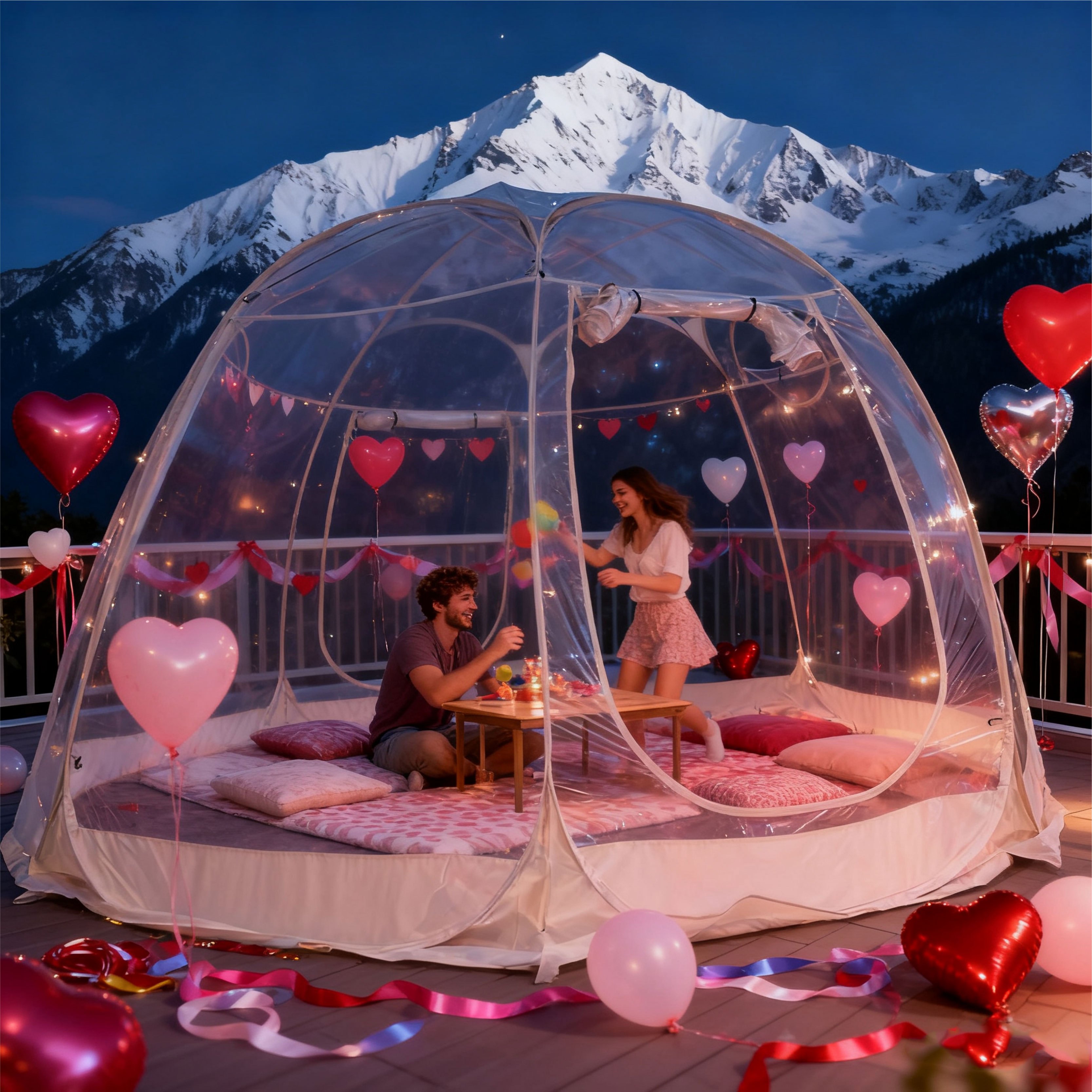 60년대 스타가징 커플용 팝업 버블 텐트 - 방풍 PVC 돔, 360° 파노라마 뷰, 사계절용 루프 텐트, 로맨틱 캠핑, 발렌타인 데이트 나이트 & 야외 여행용 (쉬운 설치)