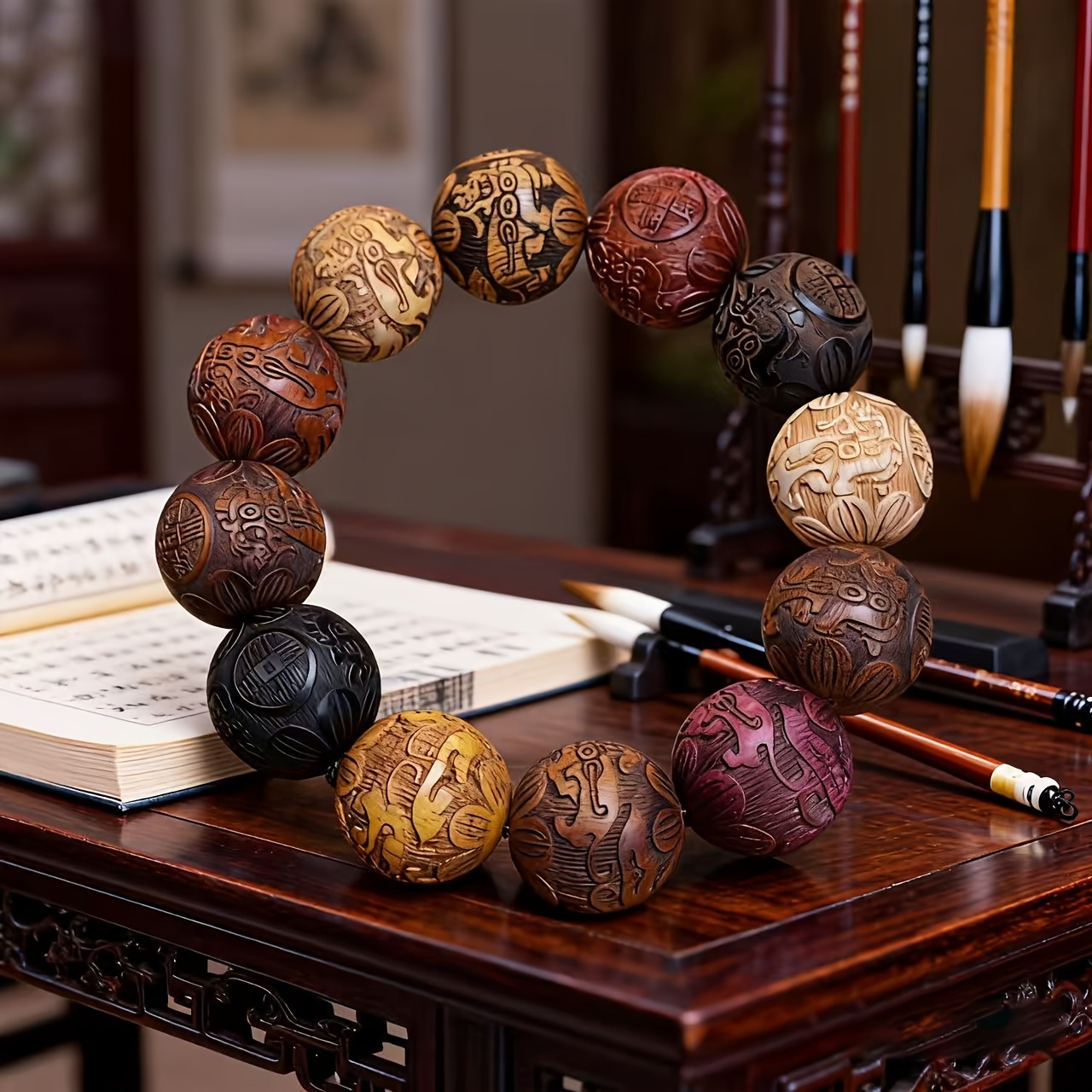 부를 끌어들이는 보물.20mm X 12개 정교하게 조각되고 꼼꼼하게 수작업된 수공예 비즈, 평상복과 특별한 날에 완벽. 번영과 행운을 상징하는 남녀공용 주얼리. 사계절용 빈티지 스타일 디자인