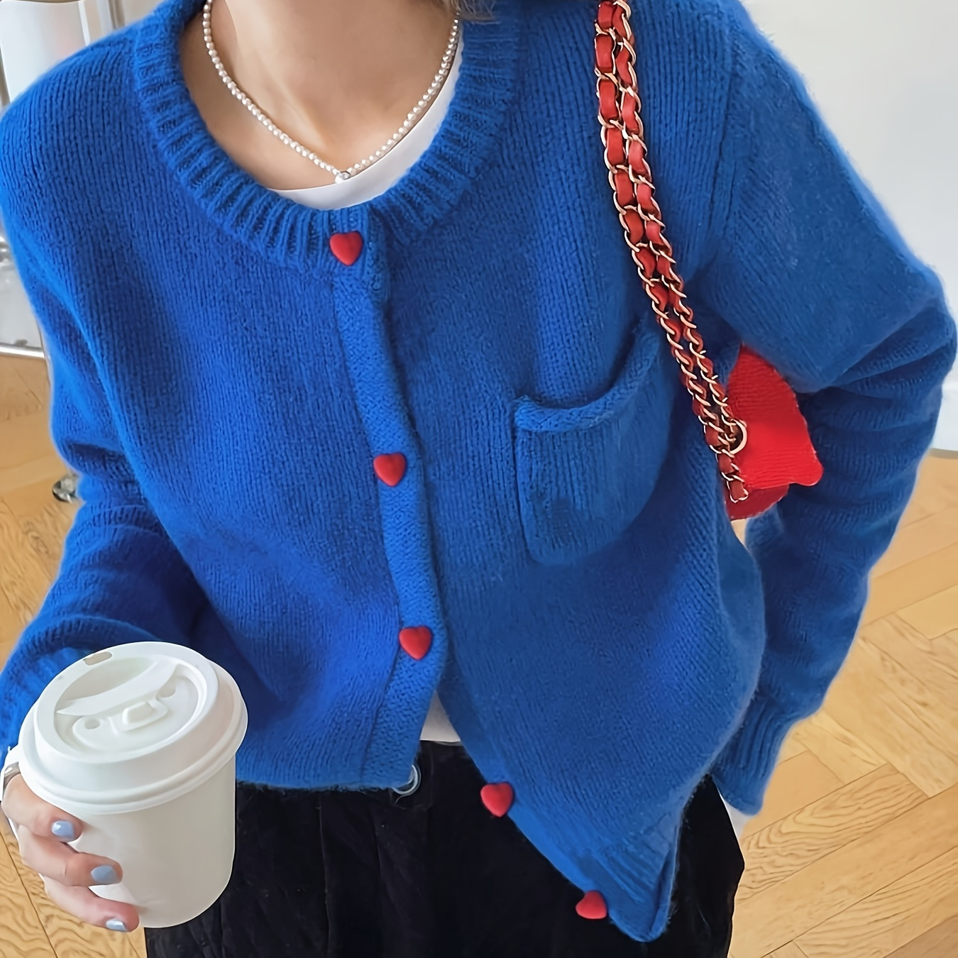 우아한 블루 가디건 | 패셔너블한 한국 스타일, 캐주얼 및 레저에 다용도, 단색, 올 시즌