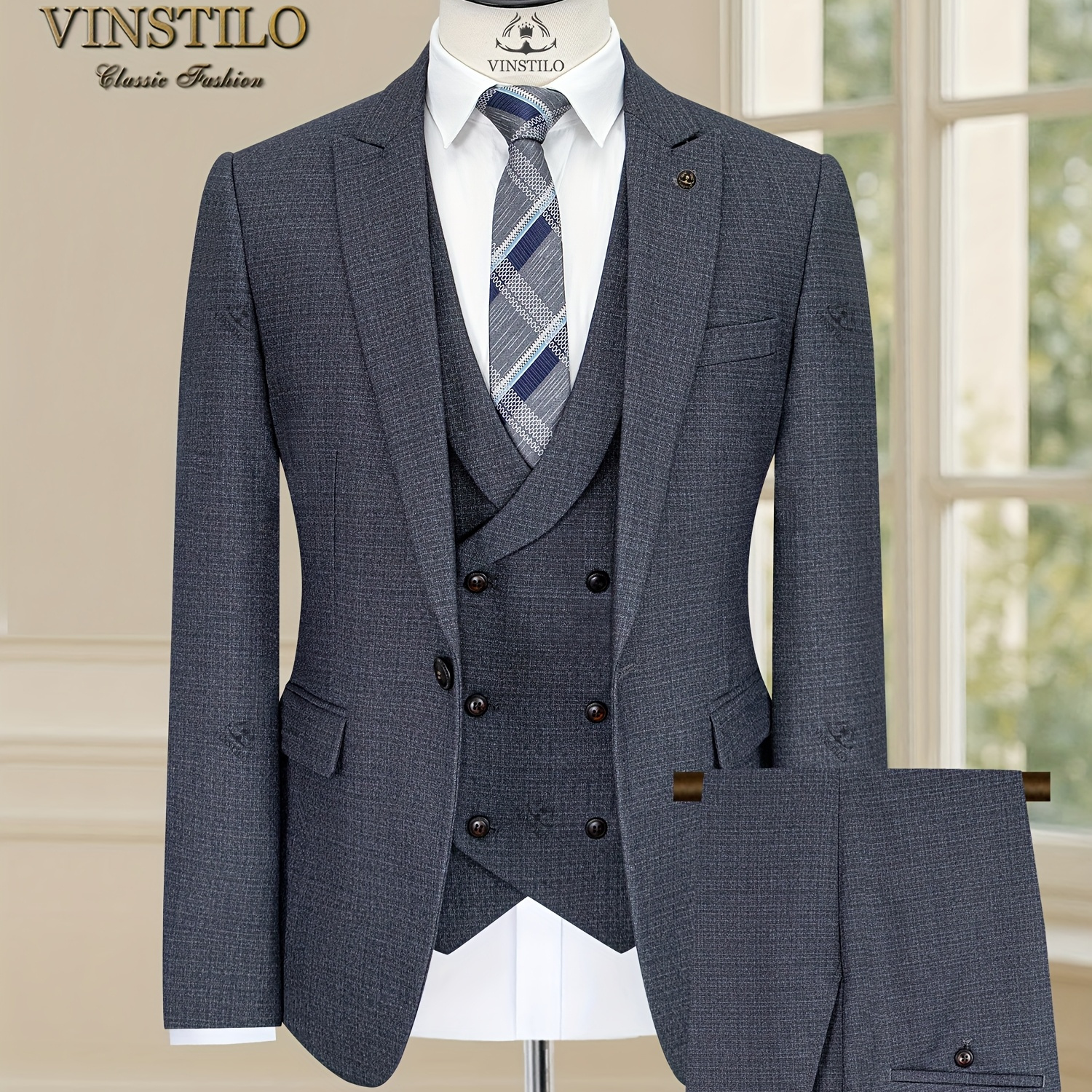 새로운 스타일의 남성용 3피스 정장 세트. 슬림핏과 고품질의 원단으로 비즈니스 캐주얼에 완벽합니다.