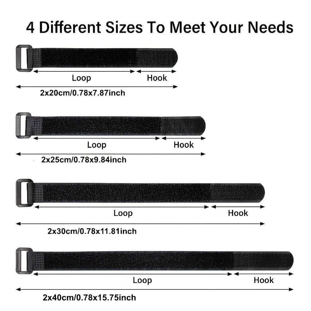 20팩 헤비듀티 블랙 후크 & 루프 바인딩 스트랩 (버클 클로저 포함) - 200-400mm 길이 호환, 다목적 케이블/와이어/후크 정리 밴드, 가정, 사무실, 체육관, 트럭 및 케이블 관리용 (200/250/300/400mm)