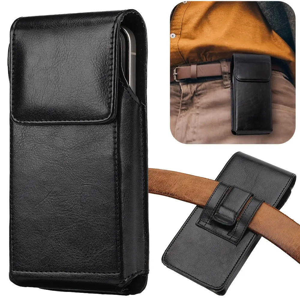 남성용 허리 가방 - 아이폰 17, 16 프로, 15 프로, 14 프로, 13 프로, 12 프로, 11 프로, 15 플러스 & 14 플러스 휴대폰 호환. PU 합성 가죽 벨트 클립형 휴대폰 홀더