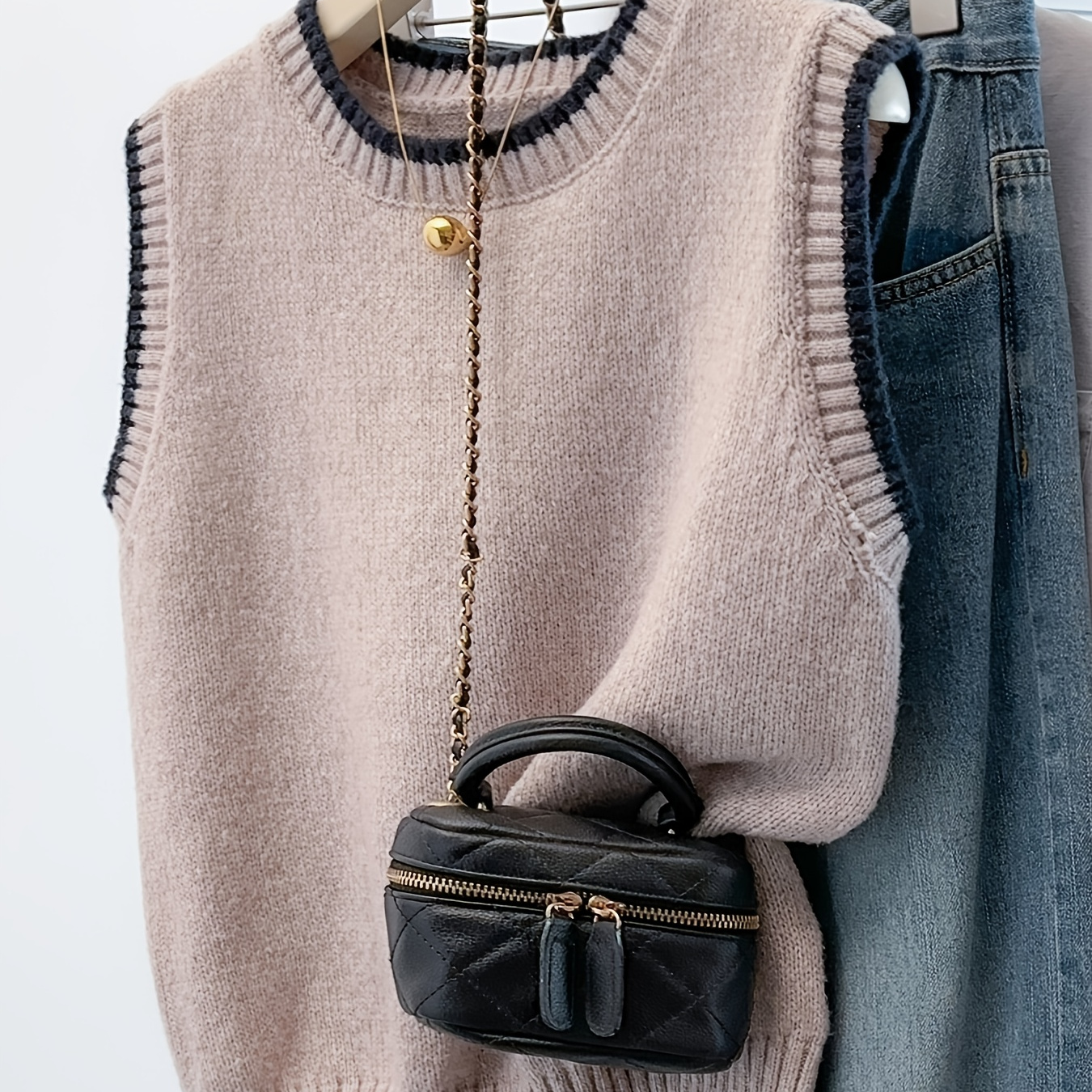 우아한 캐주얼 봄/가을 크루넥 스웨터 조끼 | 콘트라스트 트림 디테일이 돋보이는 패셔너블 여성용 조끼, 단색, 버튼 클로저 - Ibufen
