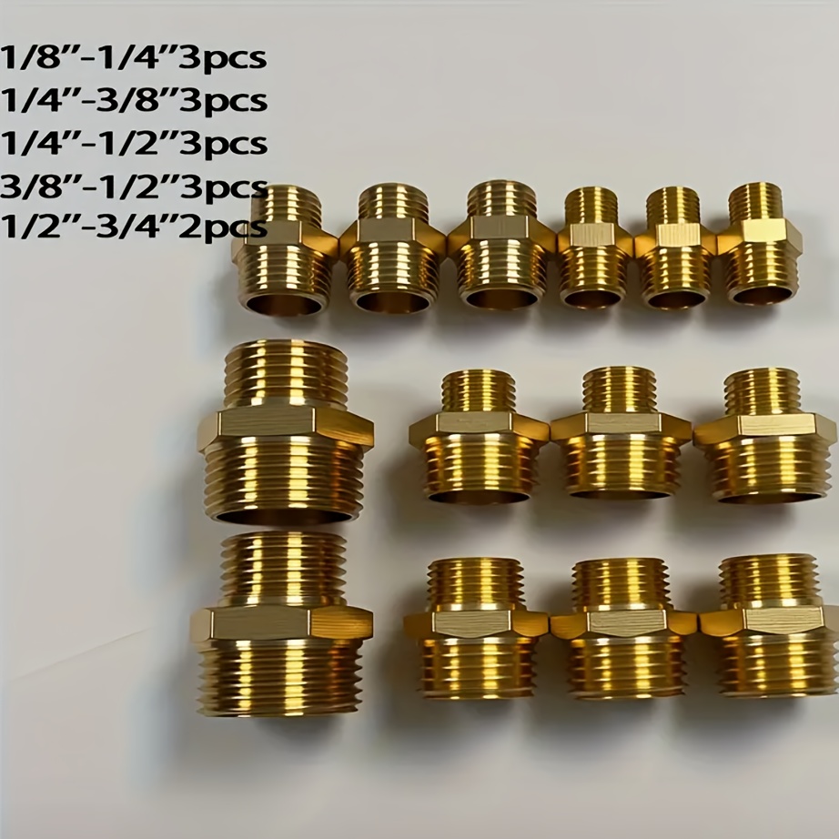 14개 세트 헤비듀티 황동 육각 파이프 피팅 - 1/8", 1/4", 1/2", 3/4" 호환, 육각 어댑터 커넥터, /EU 나사, 공압/유압 시스템, 자동차 및 배관용 (금속 파이프 피팅)