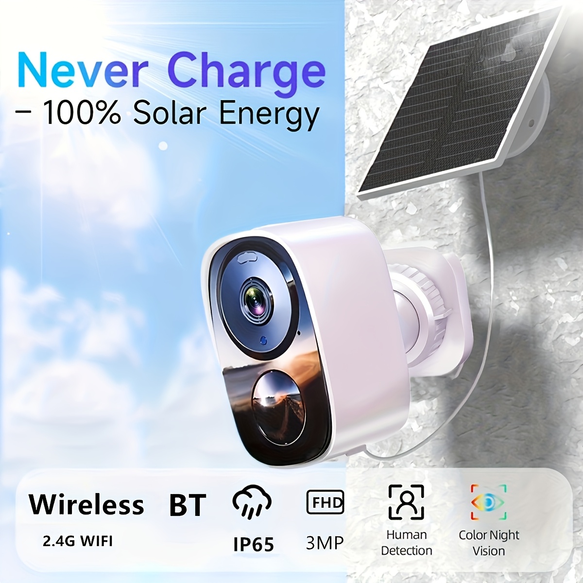 3MP 무선 보안 카메라 야외용 IP65 배터리 태양광 패널 포함, SD/무료 클라우드 저장, AI 모션 감지 스포트라이트 사이렌 알람 실내/외용 무선 카메라, 2.4GHz 와이파이, 양방향 통화, 크리스마스 및 새해 선물