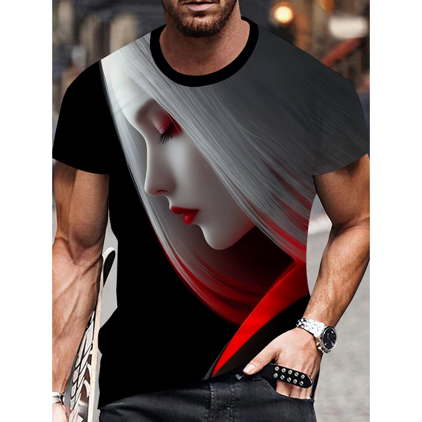 남성용 반팔 티셔츠 패션 프린트 스트릿 스타일 캐주얼 상의 편안하고 통기성 좋은 여름 트렌디 남성복 세탁기 사용 가능 [프린트 디자인 - 텍스처 없음]