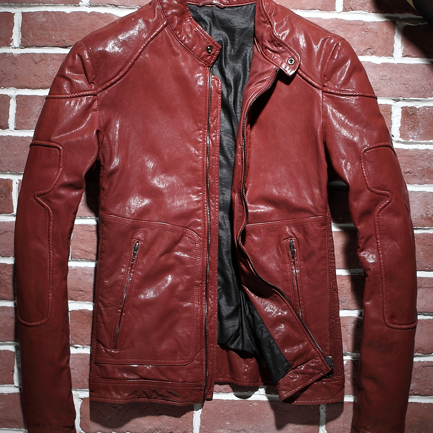 남성 슬림핏 양피재킷 - 스탠드 칼라 숏 기장 지퍼 앞면 포켓, 솔리드 컬러 캐주얼 작업복 (봄 & 가을), 내구성 좋은 안감, 데일리 & 포멀 웨어, 봄 아우터, 세련된 디자인, 부드러운 질감