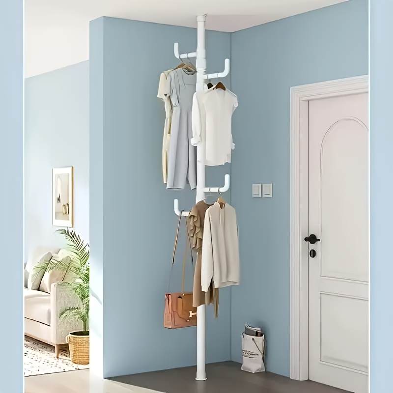 조절 가능한 텐션 로드 옷걸이, 길이 110.01-310.01 cm, 4개 후크 장착, 확장형 수납 솔루션, 거실, 발코니, 주방에 적합 - 재킷, 모자, 스카프 등 보관에 완벽