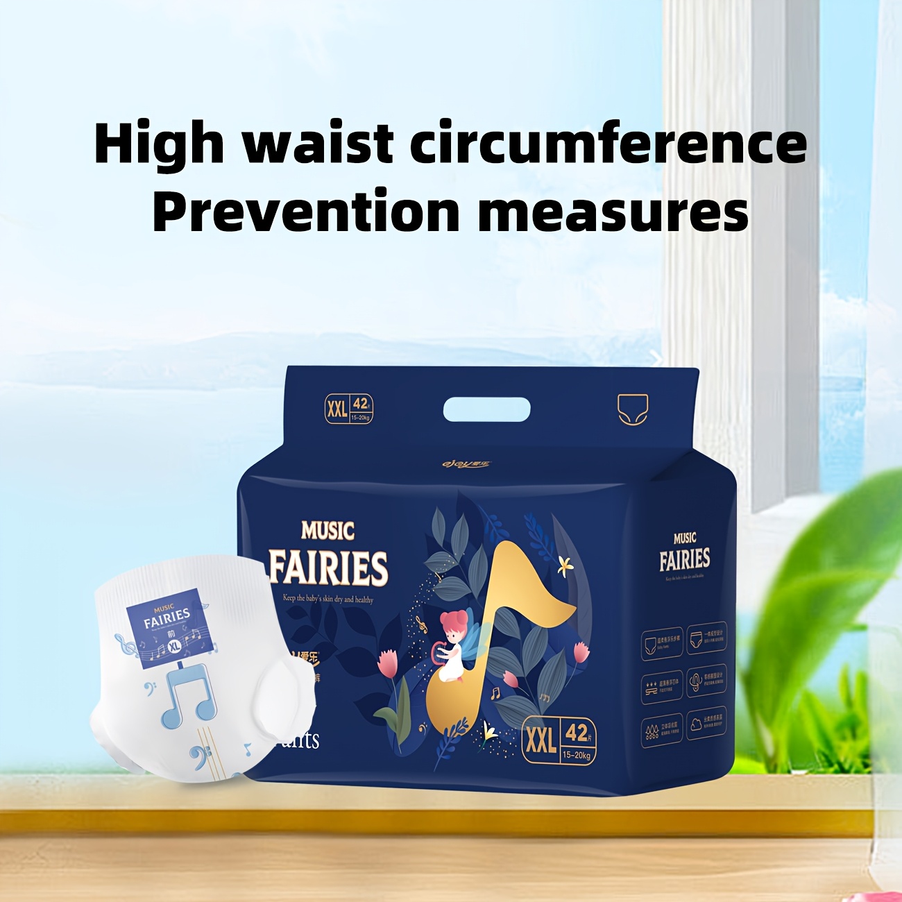 Music Elf 일회용 걷기 바지, 빠른 흡수를 위한 서스펜션 코어 포함; 허리둘레는 고급 신축성 고무 밴드로 제작되어 편안하고 답답하지 않으며, 아기 배변 훈련과 같은 다양한 상황에 적합합니다