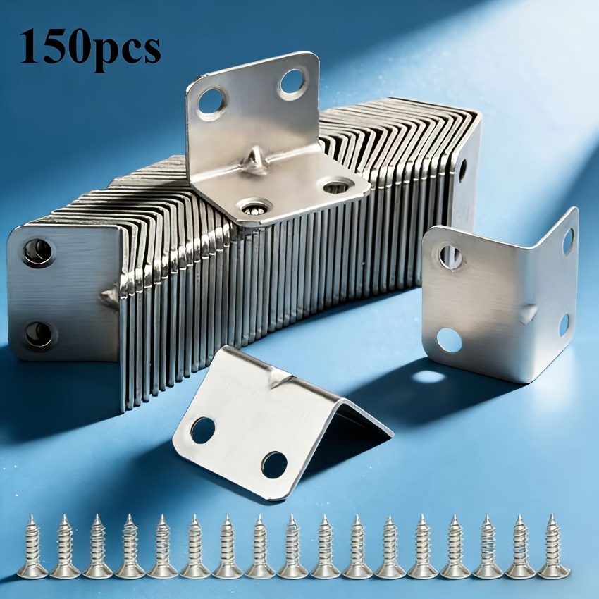 150개 헤비듀티 스틸 L형 가구 커넥터 - 캐비닛, 테이블, 침대용 4홀 힌지, 도어 설치 하드웨어 패스너, 테이블, 선반, 도어 프레임용