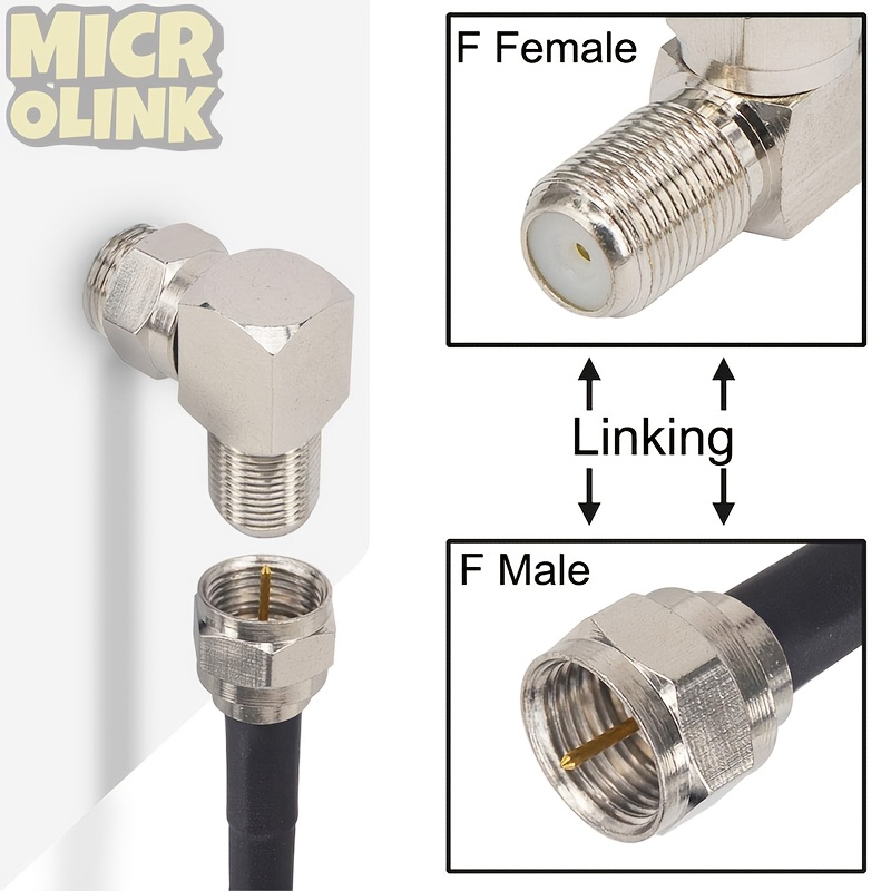 MicroLink RG6 동축 케이블 연장기 커넥터, 업그레이드된 F형 직각 연결용 어댑터 – 수-암 퀵 어댑터, 벽걸이 환경용, TV 케이블용, 4개입, 90도 각도 디자인