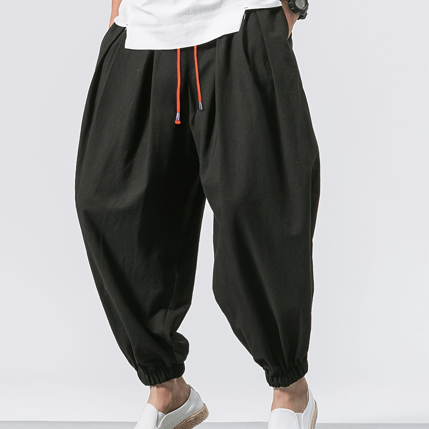 남성용 루즈핏 하렘 팬츠 | 캐주얼 드로스트링 허리, 신축성 없는 원단, 단색, 데일리 외출 및 주말 캐주얼에 적합