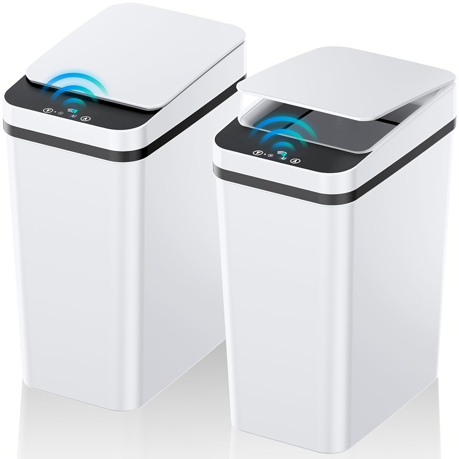 반 사이즈 화이트 (12L/3.17Gal) 터치리스 스마트 휴지통, 배터리 작동 (AA 배터리 2개 미포함), 적외선 뚜껑 개방 기능 포함, 욕실, 주방, 침실 및 거실에 적합