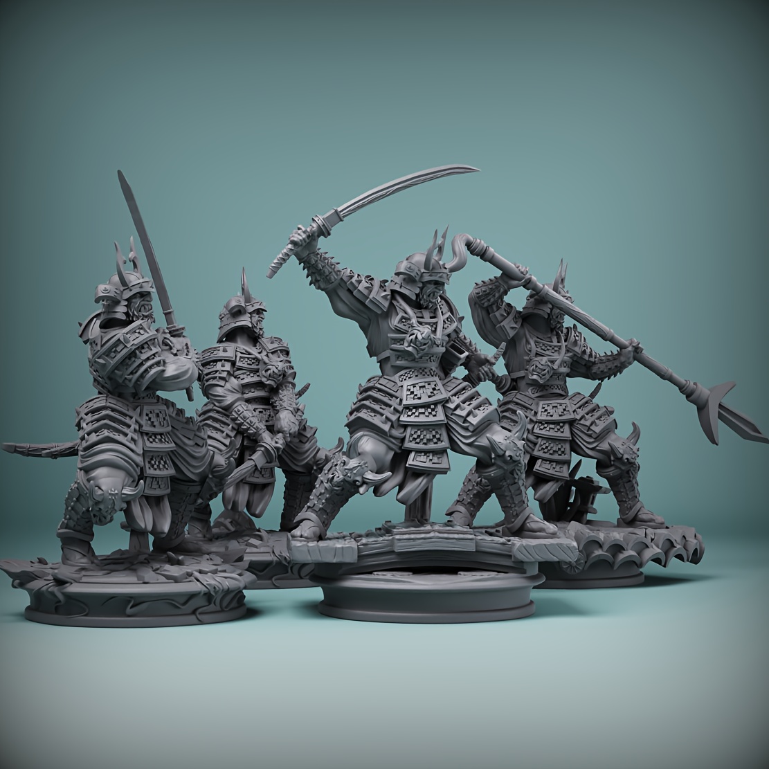 4개 동양 스타일 사무라이 미니어처 - 방 장식용 - 게임 선물 아이디어 - 테이블탑 게임 동반자 - 체스 말 수집품 - 작은 그림 - 할로윈 크리스마스 선물