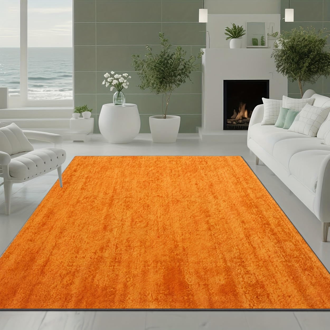 부드러운 플러시 + 점찍힌 플라스틱 바닥, 오렌지 단색 프린트 카펫, 2D 프린팅 러그, 마트 및 카페와 같은 다양한 환경에 적합한 스타일리시한 홈 데코 카펫, 거실 러그, 소파 매트 또는 침대 옆 카펫으로 사용 가능