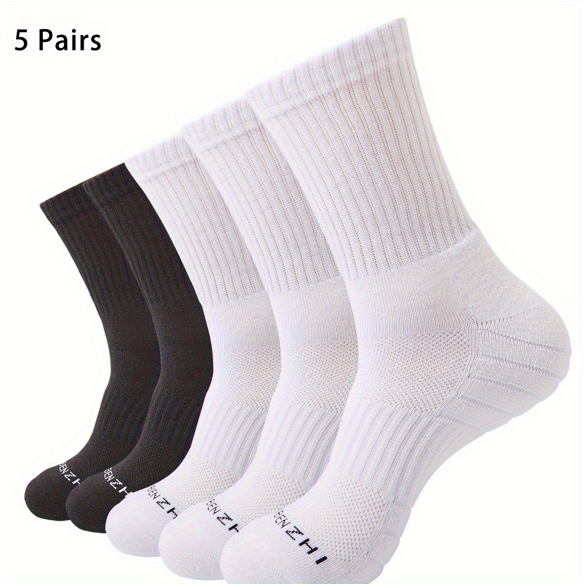 남녀공용 두꺼운 테리클로스 밑창 쿠션 미드 캐프 양말 5켤레, 데일리 캐주얼 하이킹 사이클링 러닝용