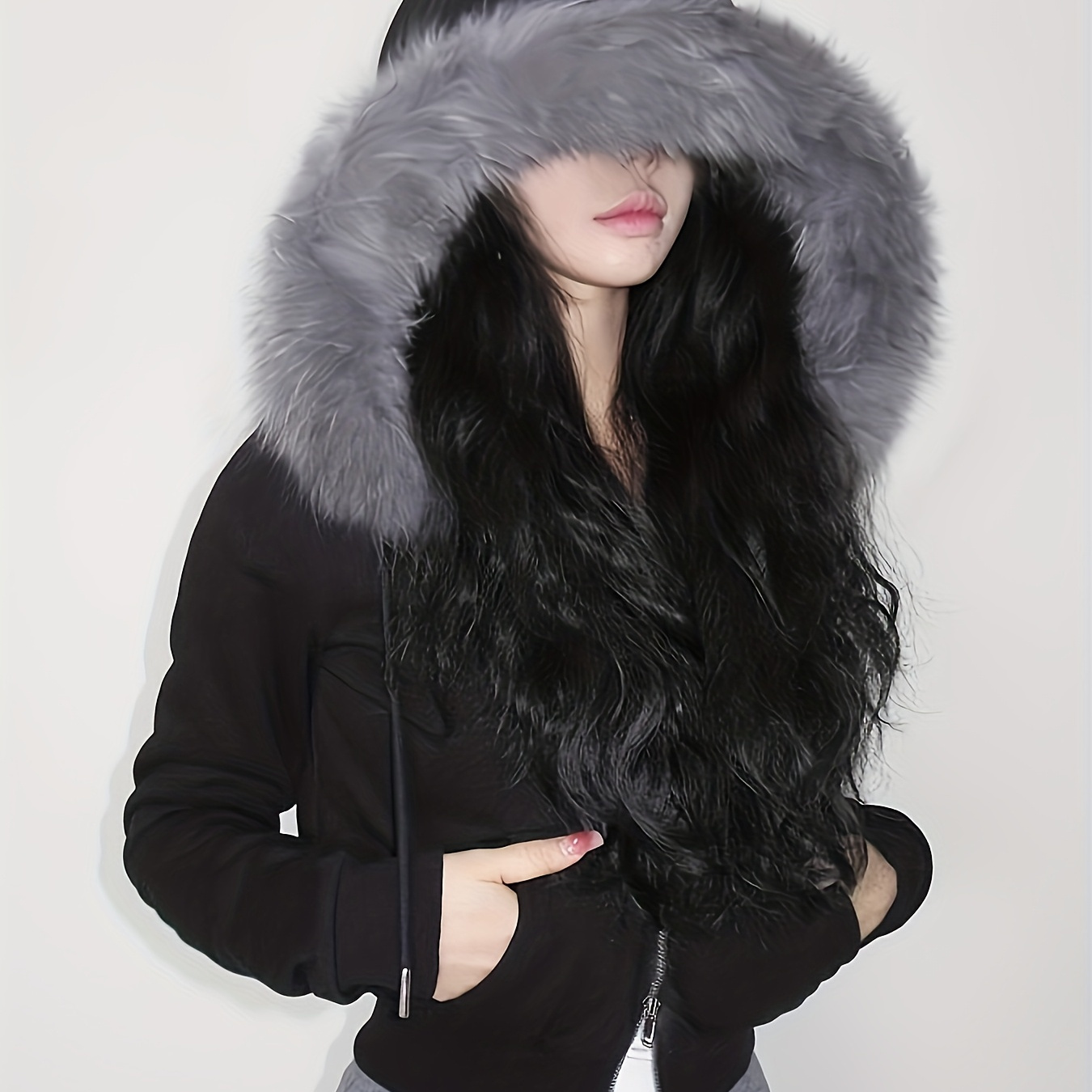 여성 후드 두꺼운 단색 다용도 스웨트셔츠 - 가을/겨울 가디건 캐주얼 포켓 반지갑 재킷 - 미국 스타일 스파이시 슬림핏 스플라이스 더블 헤드 지퍼 스웨트셔츠 - 따뜻한 레트로 긴소매 허리 스몰 후드 재킷 탑