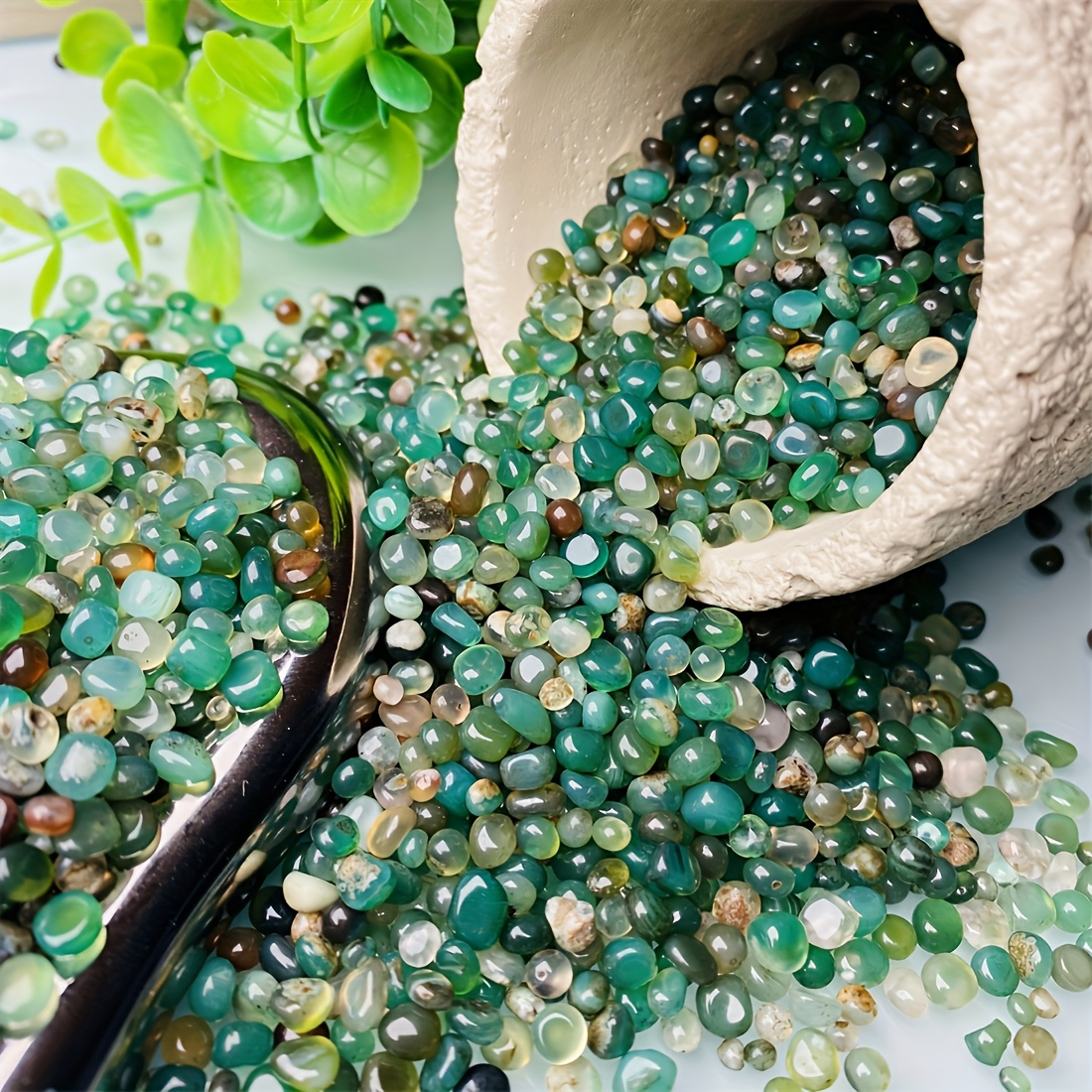 100g (약 170개) 천연 그린 아게이트 - 수족관, 정원 & 홈 데코용 생생한 스톤, 광택 처리된 반투명 그린, 브라운 & 멀티컬러 조약돌, 수족관 장식 | 광택된 조약돌 | 광택 표면