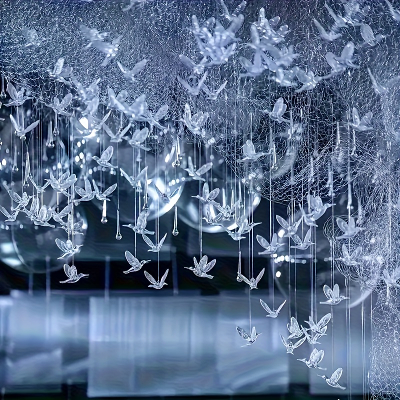 11개 투명 벌새 장식, 플라스틱 재질의 낚싯줄 50M 포함, 홈 데코에 완벽. 결혼식, 호텔, 크리스마스 트리, 축제 파티에 이상적. 전기 불필요, 간편한 걸이