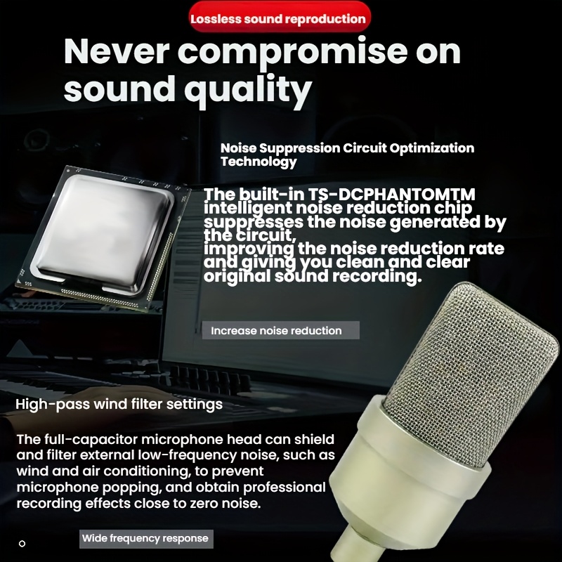 순수 사운드 콘덴서 마이크, 카디오이드 극성, 저소음 고감도, 따뜻한 보컬 캡처, 현실적이고 디테일한 사운드. 프로페셔널 라이브 스트리밍 마이크 / 스튜디오 보컬 녹음 / 홈 카라오케 및 기타 전문 설정용, 노래방 마이크,비디오 회의 마이크,슬림한 마이크,스타일리시 콘덴서 마이크,프로페셔널 그레이드 마이크,프리미엄 오디오 장비,보컬 마이크,스튜디오 퀄리티 마이크,콘텐츠 크리에이터