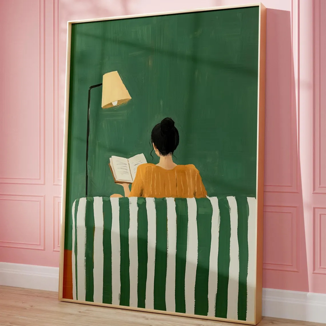 2D 플랫, 2D 플랫, 1개, 벽 장식, 레트로 포스터, 에메랄드 그린 여성 독서 벽 아트, 추상적인 여성 프린트, 책 애호가 벽 아트, 스타일리시 독서 포스터 모던 아트, 현대적인 장식, 침실 및 거실 장식에 이상적