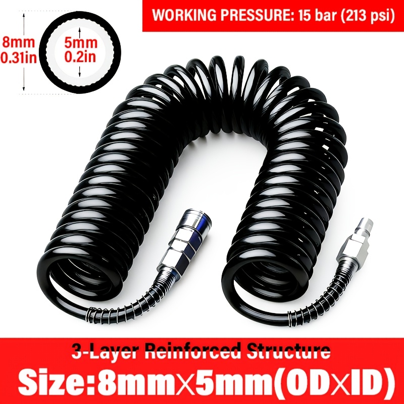 8X5mm 고압 공기 압축기 스프링 튜브, 15바 압력, 폴리우레탄 브레이디드 스파이럴 에어 튜브, 유럽 및 일본 고속 커넥터 포함, 산업용 공압 시스템에 적합 (590.55인치/196.85인치/393.7인치), 압축기 호스