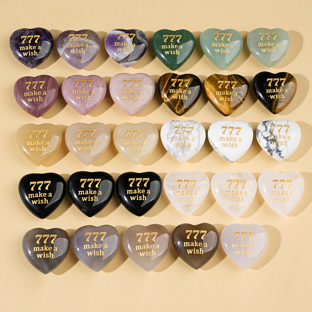 1개/3개 크리스탈 하트 모양 소원 돌, 손으로 조각된 천사 숫자 777 행운의 돌과 우정과 사랑의 신비로운 상징, 보석 제작용 핑크, 퍼플, 화이트, 옐로우, 그린 색상 가능, 발렌타인데이, 추수감사절, 크리스마스에 친구, 연인, 동창, 연인을 위한 완벽한 선물